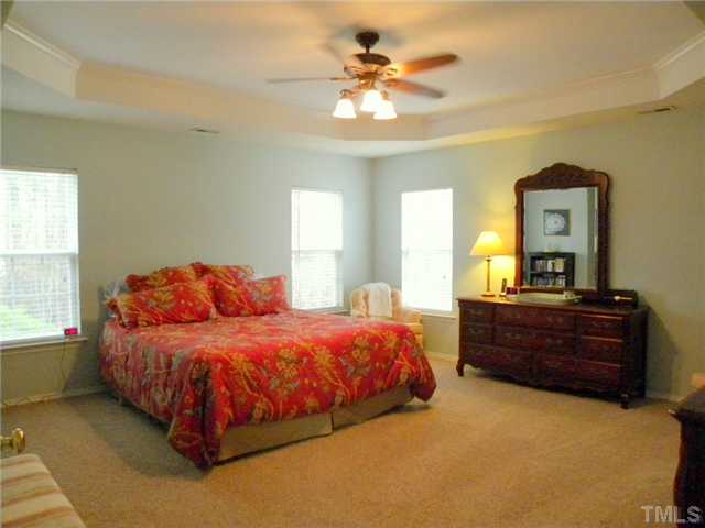 Wonderful 4 bed home Freshly Painted with BRAND NEW CARPET. Two story family room, liv/din all with hardwood flrs. Large kitchen w/cntr island,42″ maple cabinets, Spacious fam rm w/ direct vent, gas log FP. 8204 Haines Creek Lane of Raleigh has a Master w/ Trey Ceiling, his & her WI closets, sep shower/garden Tub. Big fenced in yard backs up to greenspace. Conv to I540, Triangle Twn, Pool/tennis and *walking trails coming soon*